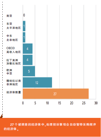 在一些国家,质疑投诉审查机制是独立于采购程序之外的,而无论出于何种目标建立的争端解决机制难免会产生内部冲突。比如,决策者若想让这一机制管理完善且施行过程合规恰当,就无法避免成本的增加并容易延长最终公布结果的时间;而对于那些过分追求效率的政府,就不得不压缩争议解决时限。世界银行在其发布的《公共采购基准研究2016》中,针对77个经济体投诉与报告机制中的三个领域进行了调查研究:包括投诉与报告机制的实用性,第一层与第二层审查程序。