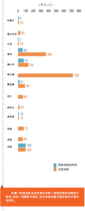 通常来说,各国立法框架中会对缔约机构投诉处理决定的时限进行说明,可是这与实际的执行情况还是存在一定偏差。各经济体对这一时限的规定也各有不同,但包括澳大利亚、中国香港、爱尔兰、约旦在内的12个国家和地区并未对此进行说明。尽管澳大利亚、荷兰、新西兰、瑞典和英国都未在立法框架中,对政府机构作出投诉处理决定的时限加以明确,但这些国家的投诉方一般都会在30日内,或最多不超过90日内收到答复,其他未对这一时限进行规定的经济体,投诉方或许会要等待数月才能收到处理结果,比如智利和墨西哥。