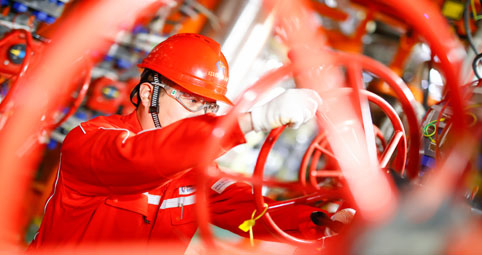 国家能源局等四部门近日印发《关于推进能源装备高质量发展的指导意见》。其中提出,加快油气勘探开发装备等能源勘探开发装备转型升级,优化产业创新生态环境,充分发挥采购等支持政策,推进科技创新成果转移转化,建立国有企业采购首台(套)能源装备绿色通道机制,优化创新产品招投标等政策,探索创新联合体等科研项目以灵活方式发包。图为工人在渤海海域一油田海上作业平台进行油井流程调整。