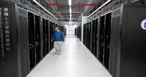 近年来,安徽省宿州市加快产业结构优化调整,积极布局算力产业,建成淮海人工智能计算中心、汴水之畔科学计算中心、算力互联智算中心、国创智算中心等重点项目,吸引腾讯、阿里、华为等众多头部企业落地布局。目前,宿州市算力产业集群共集聚企业465家,2024年实现营业收入74.93亿元,算力产业已成为宿州市经济增长的“新引擎”。图为11月2日,工作人员在宿州市算力产业园淮海人工智能计算中心机房查看服务器运行情况。
