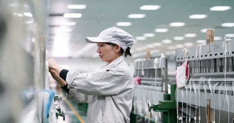 《国家新兴产业创新中心管理办法》近日公开征求意见。其中提出,产业创新中心应依法采购本国仪器设备、工业软件、操作系统等。产业创新中心的主要任务包括强化概念验证和中试能力,开展实验室技术熟化、产业前沿技术研发和竞争前商品试制,创制产业技术标准,推动产业技术变革,开展关键工艺、关键装备、关键材料开发验证等。图为河南省林州市一新材料生产企业的工人在电子布生产车间作业。