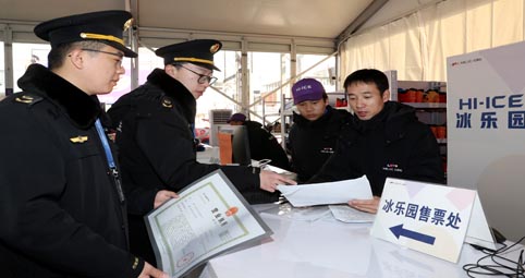 为维护冰雪旅游市场良好价格秩序,近日,北京市海淀区市场监管局对辖区滑冰场所开展价格监督检查,重点查处不按规定明码标价、线上线下价格不一致等违法违规行为,营造良好的冰雪旅游市场环境。图为海淀区市场监管局对辖区某滑冰场所进行检查。