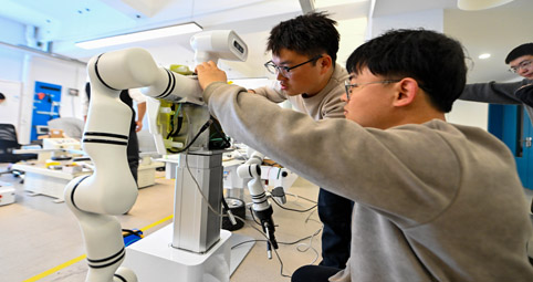 春节假期过后,天津滨海高新区多家高新技术企业实验室内人员忙碌、生产线机器运转,一派“新”意盎然。作为国家自主创新示范区,天津滨海高新区近年来前瞻布局脑机接口、细胞与基因治疗、具身智能等未来产业,聚集了一批高能级创新平台和众多创新型企业。“十五五”时期,滨海高新区还将重点打造信创、平台经济服务业两个千亿级产业集群,推动主导产业焕新升级。图为在位于天津滨海高新区的天津智易时代科技发展有限公司,工作人员对一款具身机器人进行测试。