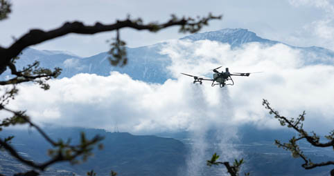 图为在四川茂县“茂县李”标准化种植基地,无人机进行植保工作。